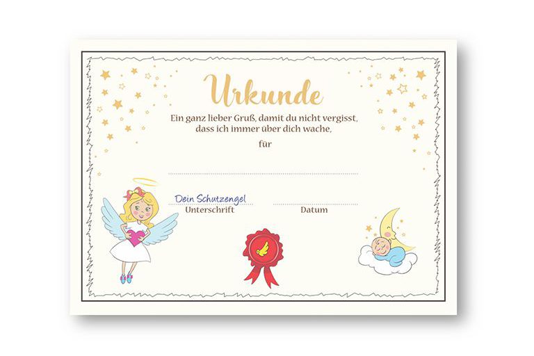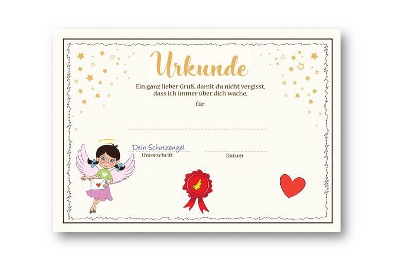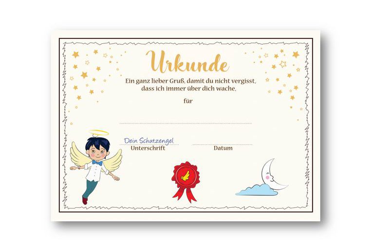 Ich bin dein Schutzengel und wache jeden Tag über dich. Obwohl du mich nicht sehen kannst, bin ich immer an deiner Seite. Wenn du mal traurig bist oder es Ärger gibt, kann ich dir versprechen: Es wird alles wieder gut!