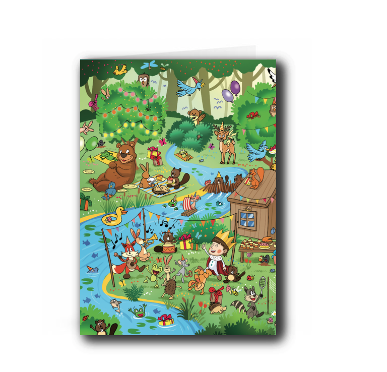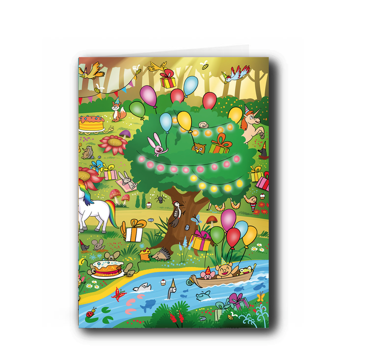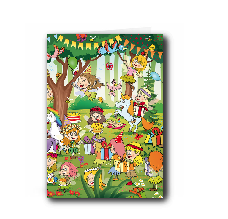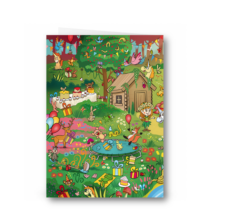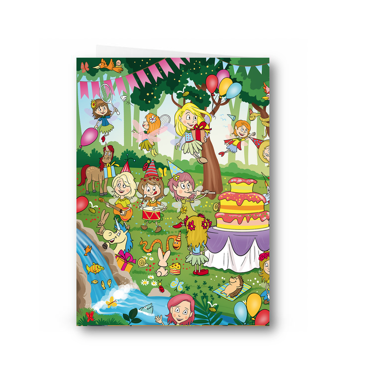 Ich werde hier im Wald mit unseren tierischen und feenhaften Freunden deinen Geburtstag feiern, um dir ein unvergessliches Erlebnis zu schenken!