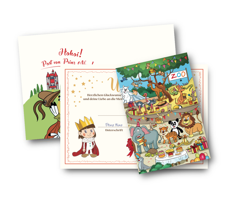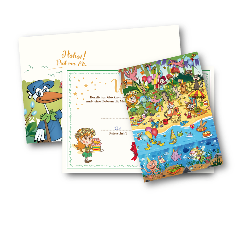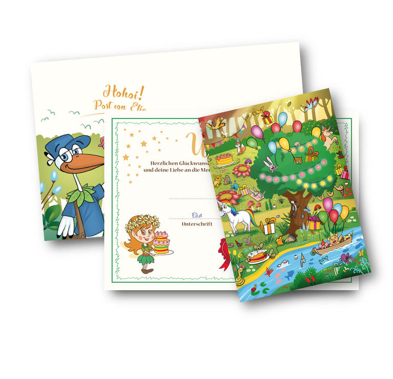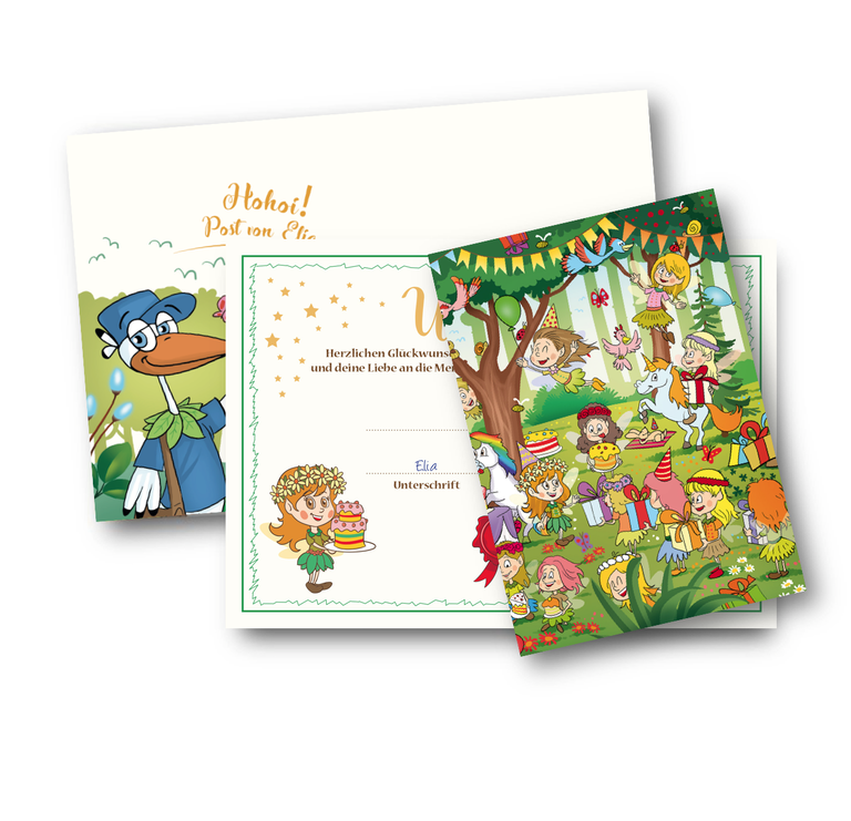 Unser junger Prinz Nino und unsere kleine Elfe Elia freuen sich darauf, Geburtstagspost an Kinder zu versenden.