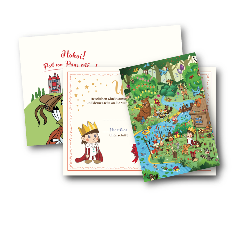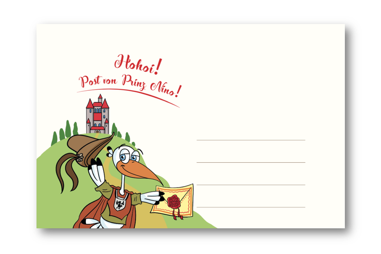 Schreibe hier die Nachricht, die dein Kind von Prinz Nino bekommen soll oder wähle einen der Beispieltexte aus und passen ihn an.